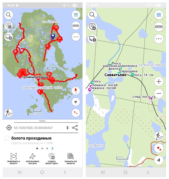 «В походах нам очень помогла интерактивная карта Соловецкого архипелага, созданная компанией «Дата Ист». В режиме офлайн мы заносили на карту свои треки, прикрепляли фотографии и писали заметки. За десять дней наша команда побывала в различных частях острова - мысе Печак, Новососновке, Реболде, озерно-канальной системе и рукотворной дамбе, ведущей на остров Большая Муксалма. Все наблюдения в итоге были перенесены в общую базу, которую используют сотрудники Центра изучения Арктики, Соловецкого музея-заповедника и Фонда Соловецкого архипелага», - рассказывает Александр Мокеров.