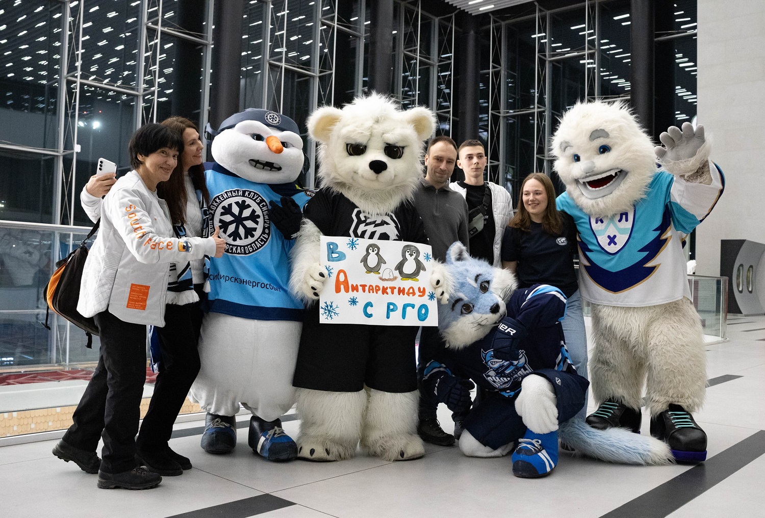 В новосибирском аэропорту Толмачево состоялось настоящее шоу талисманов хоккейных клубов и КХЛ. Так Снеговик, песец Сеня, Белый Медведь и снежный человек Крут решили проводить школьников в киноэкспедицию в Антарктиду и порадовать своих болельщиков. Победители всероссийского конкурса «Наука и вдохновение Антарктиды» Антон Обершов из Красноярского края и Анна Тихонова из Республики Татарстан проведут исследования и снимут научное кино на Южном континенте. Героями их фильма станет известный путешественник Федор Конюхов и российские ученые-полярники. В пути на Антарктический полуостров на яхте их будет сопровождать опытный полярный гид Марина Клочкова. А одним из серьезных испытаний школьников станет преодоление самого штормового места планеты - пролива Дрейка. Антарктиду нужно заслужить!